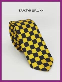 Галстук шашки на резинке школьный в корейском стиле в клетку