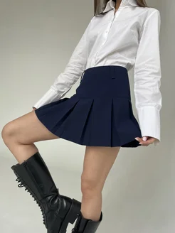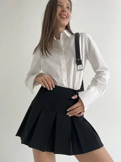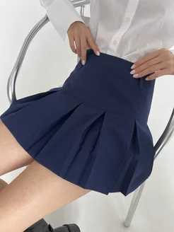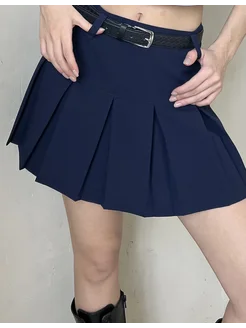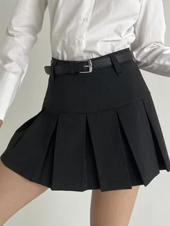 Чёрная юбка короткая в складку школа и офис из шерсти