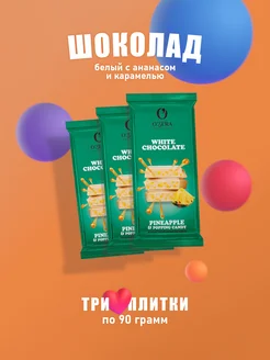 Шоколад белый с ананасом и карамелью, 3шт по 90г