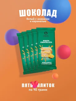 Шоколад белый с ананасом и карамелью, 5шт по 90г
