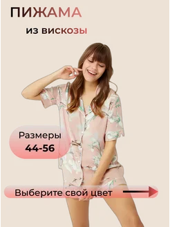 Пижама с шортами и рубашкой с коротким рукавом на пуговицах
