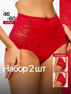 Трусы набор с высокой посадкой кружевные, 2 штуки