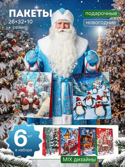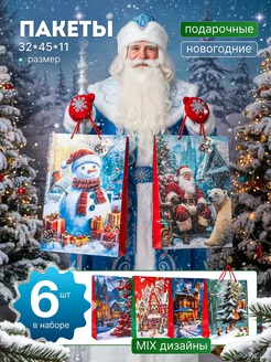 Пакеты подарочные новогодние большие прочные, набор 6 шт