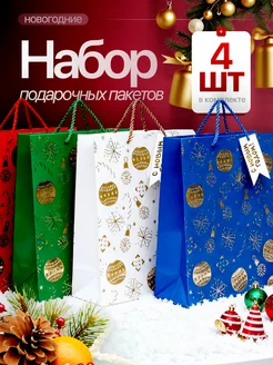 Большие новогодние пакеты для подарков, набор 4 шт прочные