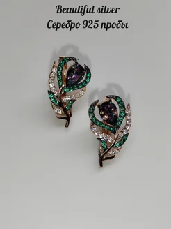 Ювелирные серьги перья из серебра 925 пробы с фианитами