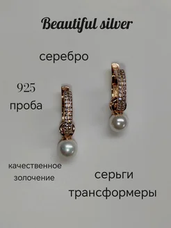 Серьги трансформеры серебряные 925 пробы с жемчугом