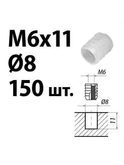 Футорка мебельная пластиковая D8, М6 х 11, забивная, 150 шт