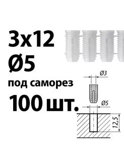 Футорка мебельная пластиковая D5, 3х12 под саморез, 100 шт