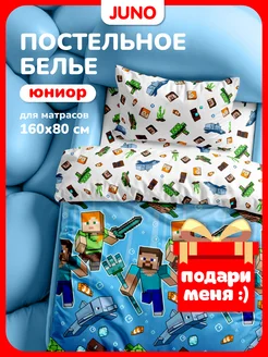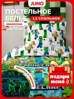 Постельное белье детское 160х80 70х140 ЮНИОР Майнкрафт НЕОН