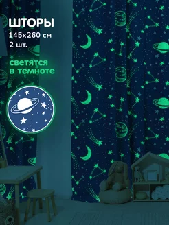 Шторы комплект в детскую комнату 2шт 150х260 Космос светится