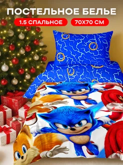 Детское постельное белье 1.5 спальное 70х70 Соник герой