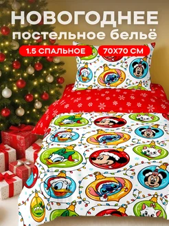Новогоднее постельное белье 1.5 спальное 70х70 Дисней микки