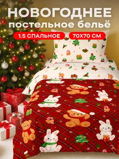 Новогоднее постельное белье 1.5 спальное 70х70 Мишки зайки
