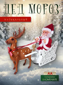 Музыкальная движущаяся игрушка Дед Мороз на санях с оленем