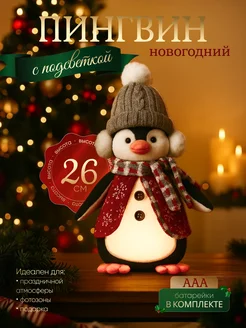 Пингвин новогодний светящийся под елку декоративный ночник
