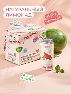 Натуральный лимонад без сахара LAPOCHKA Арбуз + Мелисса 6 шт