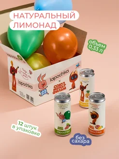 Натуральный лимонад без сахара LAPOCHKA Mix вкусов 20х0,33 л