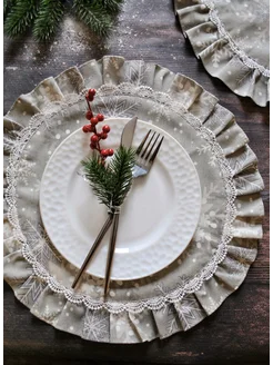 Набор круглых сервировочных салфеток с рюшей 2шт