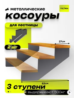 Лестница 3 ступени, косоур - 2шт, 736-10-черный