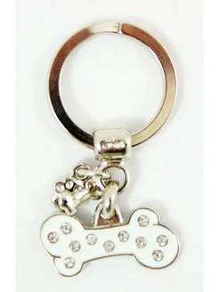 Адресник для собаки Chic со стразами, косточка, белый