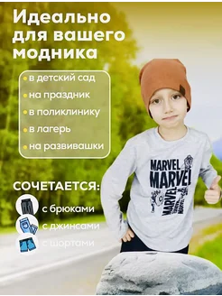 Детский лонгслив с принтом марвел серый