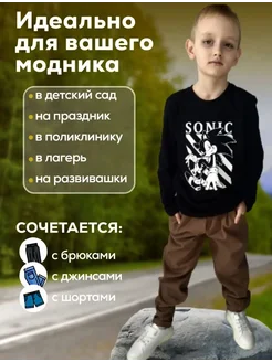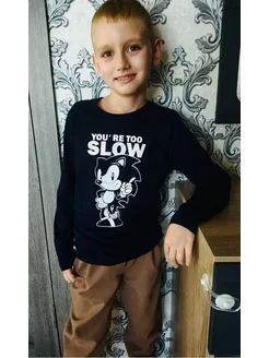 Детский лонгслив с принтом соник