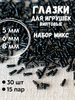 Глазки для игрушек набор 5, 6, 8 мм, 30 шт винтовые