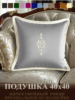 Подушка декоративная из бархата серая с вышивкой 40х40, 1шт