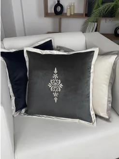 Подушка декоративная бархат с вышивкой на диван и кровать