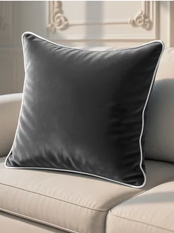 Подушка декоративная бархат темно-серого цвета, 1шт