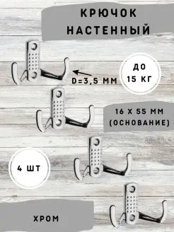 Настенные Крючки металлические в прихожую, набор 4 шт