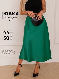 Юбка атласная миди изумрудная