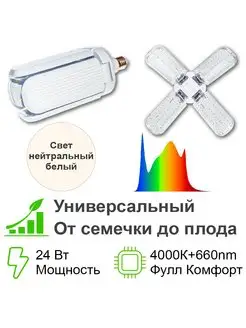 Фитолампа Лепесток полного спектра на весь цикл 24 Вт