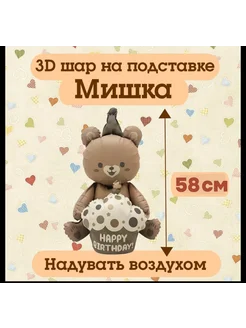 Шар фольгированный "Мишка с капкейком" бежевый, 58 см