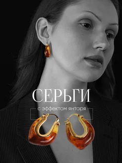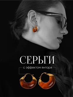 Серьги кольца с эффектом янтаря и золотистым покрытием