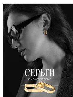 Серьги кольца с кристаллами в стиле Yves Saint Laurent