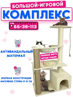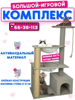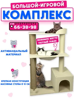 Когтеточка для кошек с домиком. Игровой комплекс с гамаком