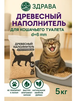 Наполнитель для кошачьего туалета древесный пеллеты 6мм, 5кг