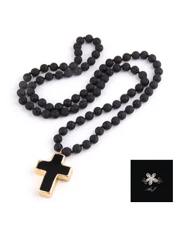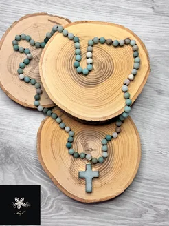 Ожерелье бусы с крестом из натурального камня