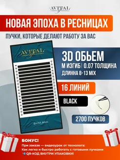 Ресницы готовые пучки 8-13 мм C 010 mix Black 3D