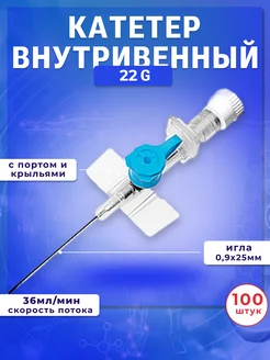 Катетер внутривенный 22G (0,9 х 25мм) - 100 шт