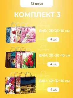 Подарочных пакетов 12 шт — каждый размер по 4 шт