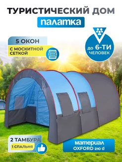 Палатка туристическая 6 местная с тамбуром двухслойная