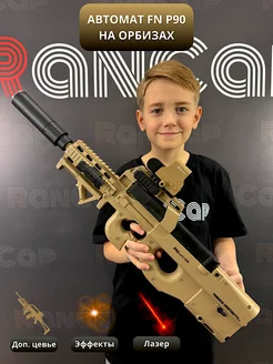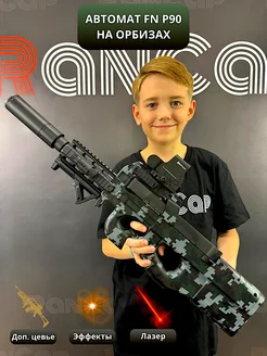 Детский автомат FN P90 на орбизах с прицелом и 3 глушителями