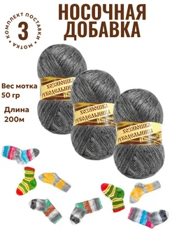 Пряжа для вязания Носочная добавка серый набор 3 мотка