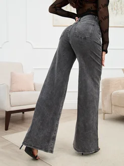 Джинсы с высокой посадкой прямые широкие трубы клеш
