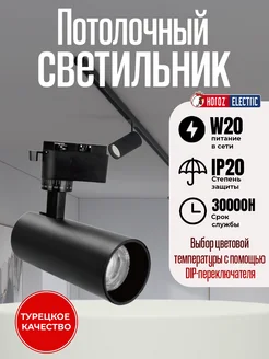 Трековый светодиодный светильник 20Вт, 3000–6000K, 160–265 В