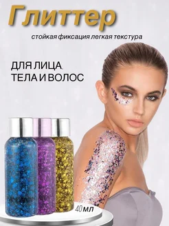 Гель блестки для тела, лица, волос, глиттер 3шт