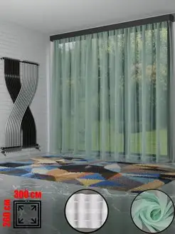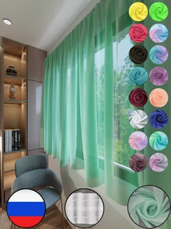 Тюль на кухню короткая 280 на 170 вуаль мятная однотон
