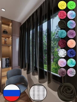Тюль на кухню короткая 280 на 170 вуаль венге однотон